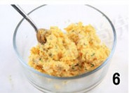 8、将剩余的蟹肉放于蛋黄馅上方装饰,